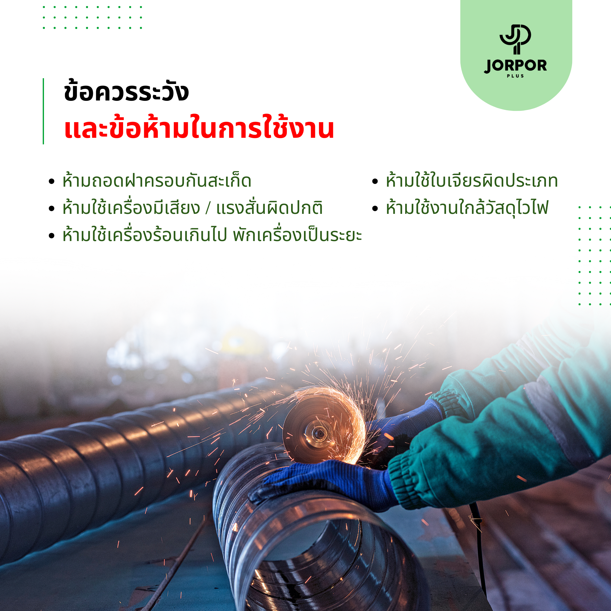 - ห้ามใช้ใบเจียรผิดประเภท เช่น นำใบเจียรเหล็กไปตัดไม้หรือพลาสติก