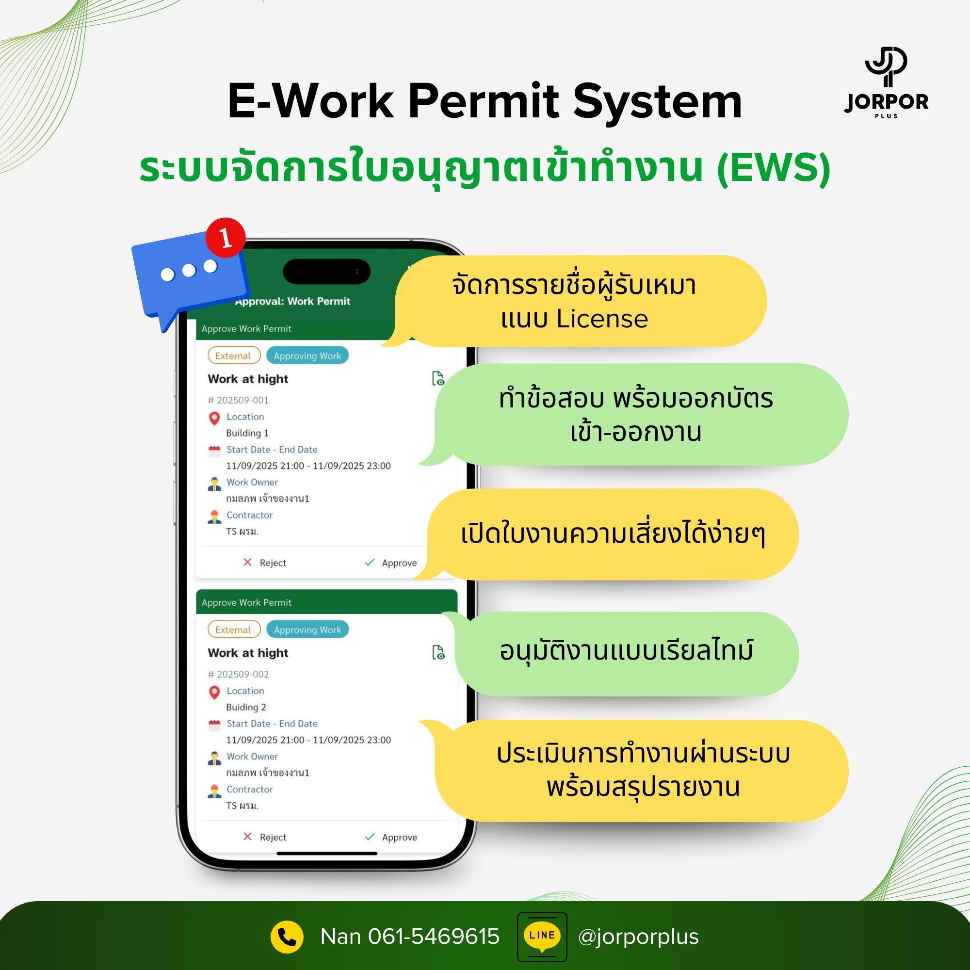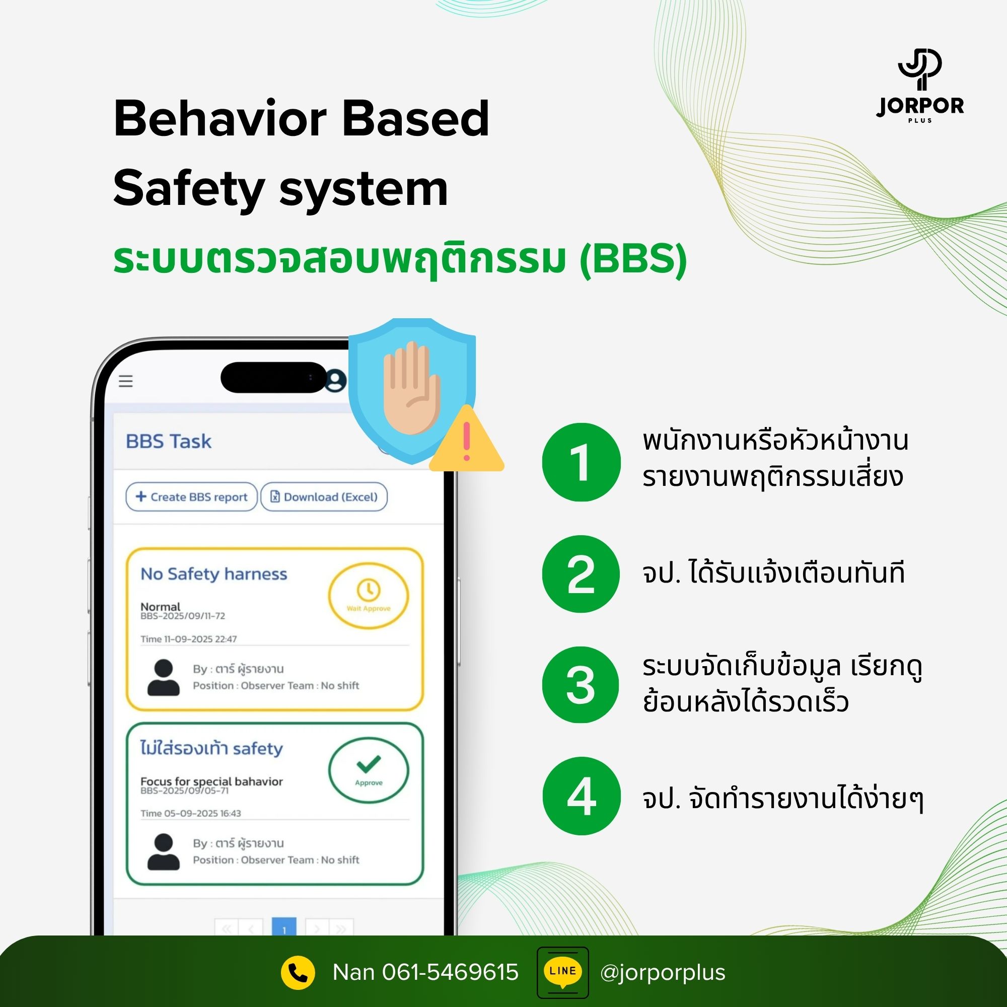 Jorpor Plusพัฒนา 5 ระบบนี้เข้าด้วยกันเพื่อทำให้การทำงานด้านความปลอดภัยมีประสิทธิภาพยิ่งขึ้น เพราะความปลอดภัยไม่ได้เป็นแค่เรื่องของการป้องกันอุบัติเหตุเท่านั้น ระบบดิจิทัลเหล่านี้จึงเป็นเครื่องมือสำคัญที่ช่วยให้ จป.สามารถบริหารจัดการความเสี่ยงได้อย่างครอบคลุม ครบวงจร และก้าวทันเทคโนโลยีความปลอดภัยแห่งโลกอนาคตอย่างแท้จริง Jorpor Plus มีบริการสาธิตระบบฟรี!! กดคลิก ได้เลย