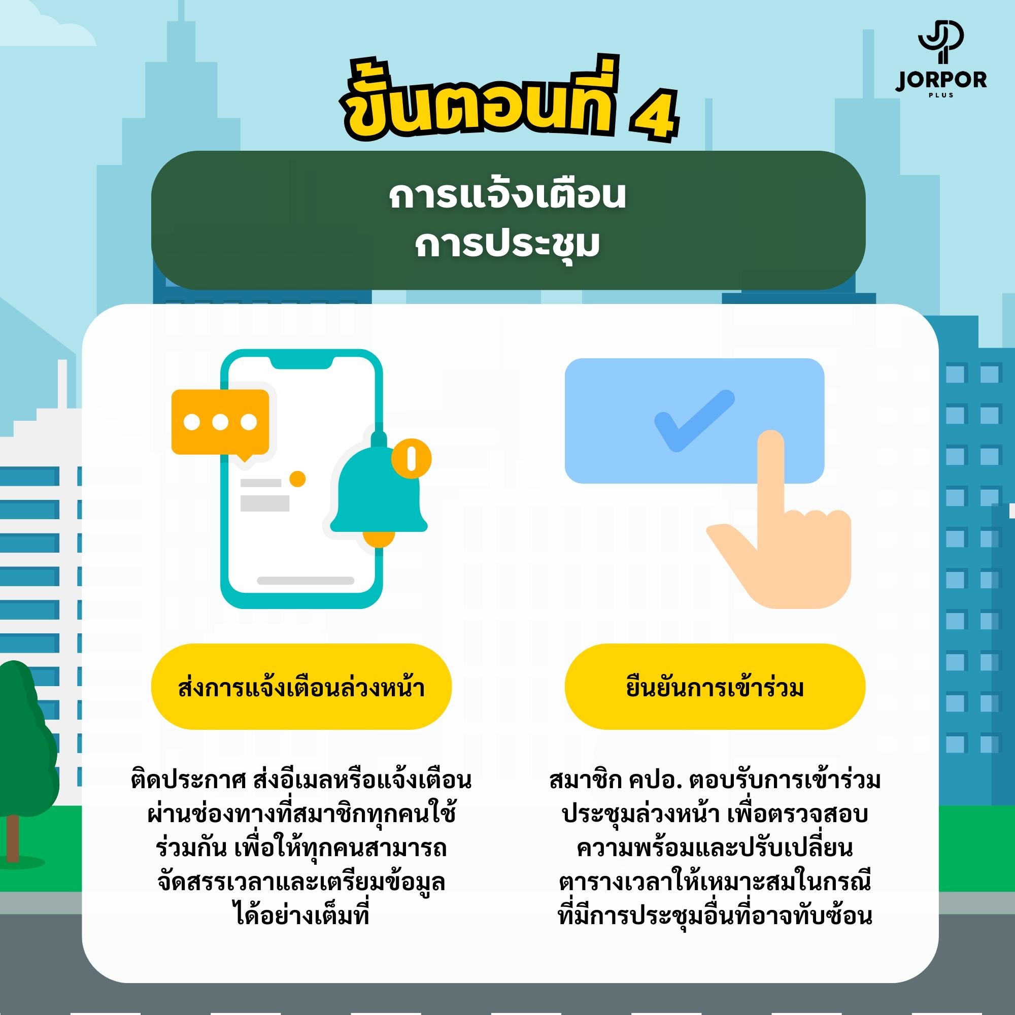 - ยืนยันการเข้าร่วม : สมาชิกคปอ. ตอบรับการเข้าร่วมประชุมล่วงหน้า เพื่อตรวจสอบความพร้อมและปรับเปลี่ยนตารางเวลาให้เหมาะสมในกรณีที่มีการประชุมอื่นที่อาจทับซ้อน