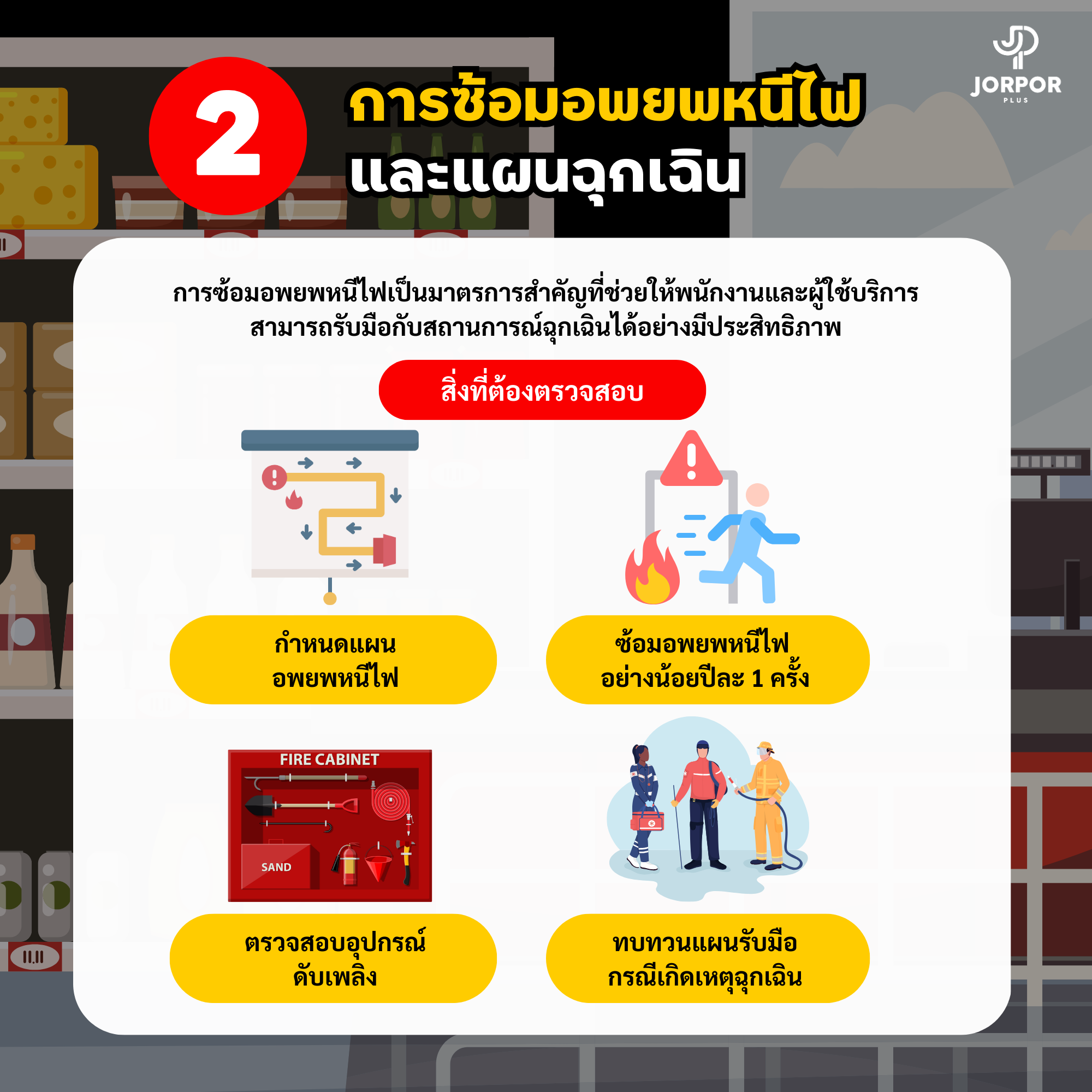 - กำหนดแผนอพยพหนีไฟและสื่อสารให้พนักงานทุกคนทราบ