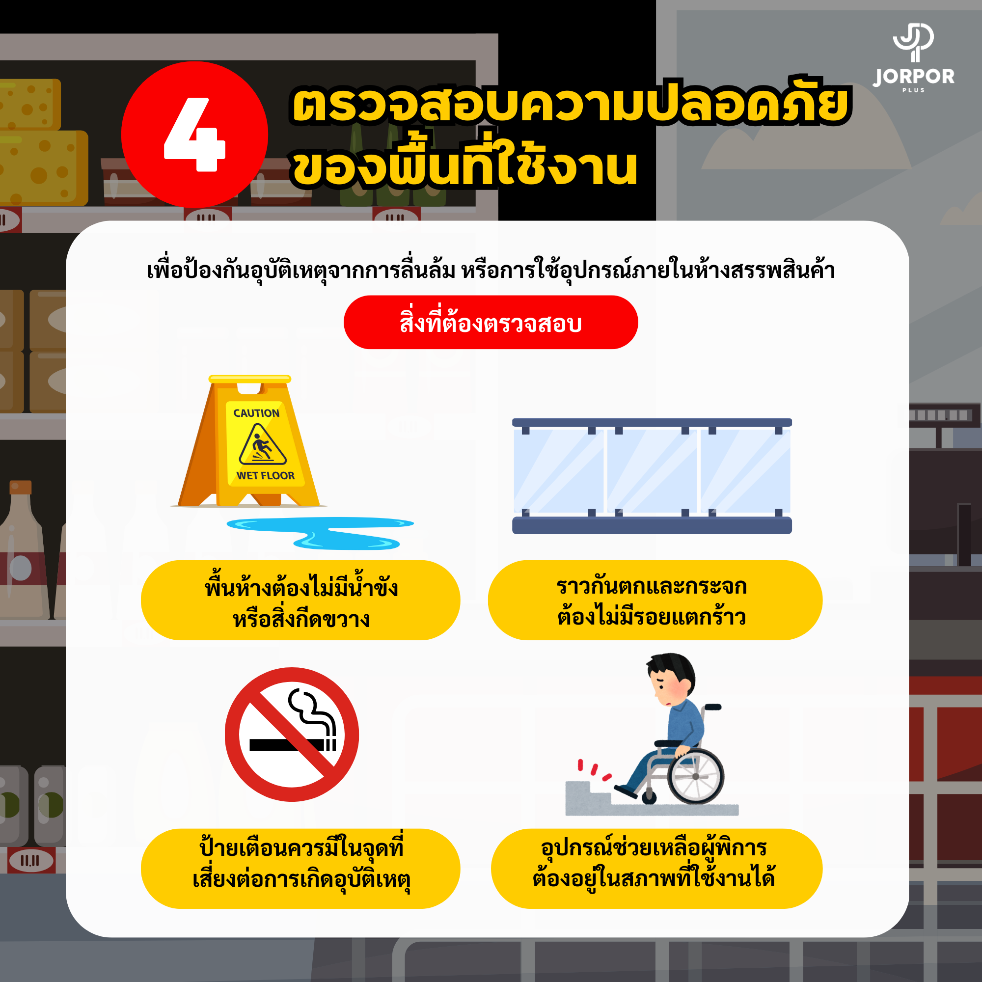 - ห้างต้องมีมาตรการป้องกันอันตรายที่อาจเกิดกับพนักงานและลูกค้า