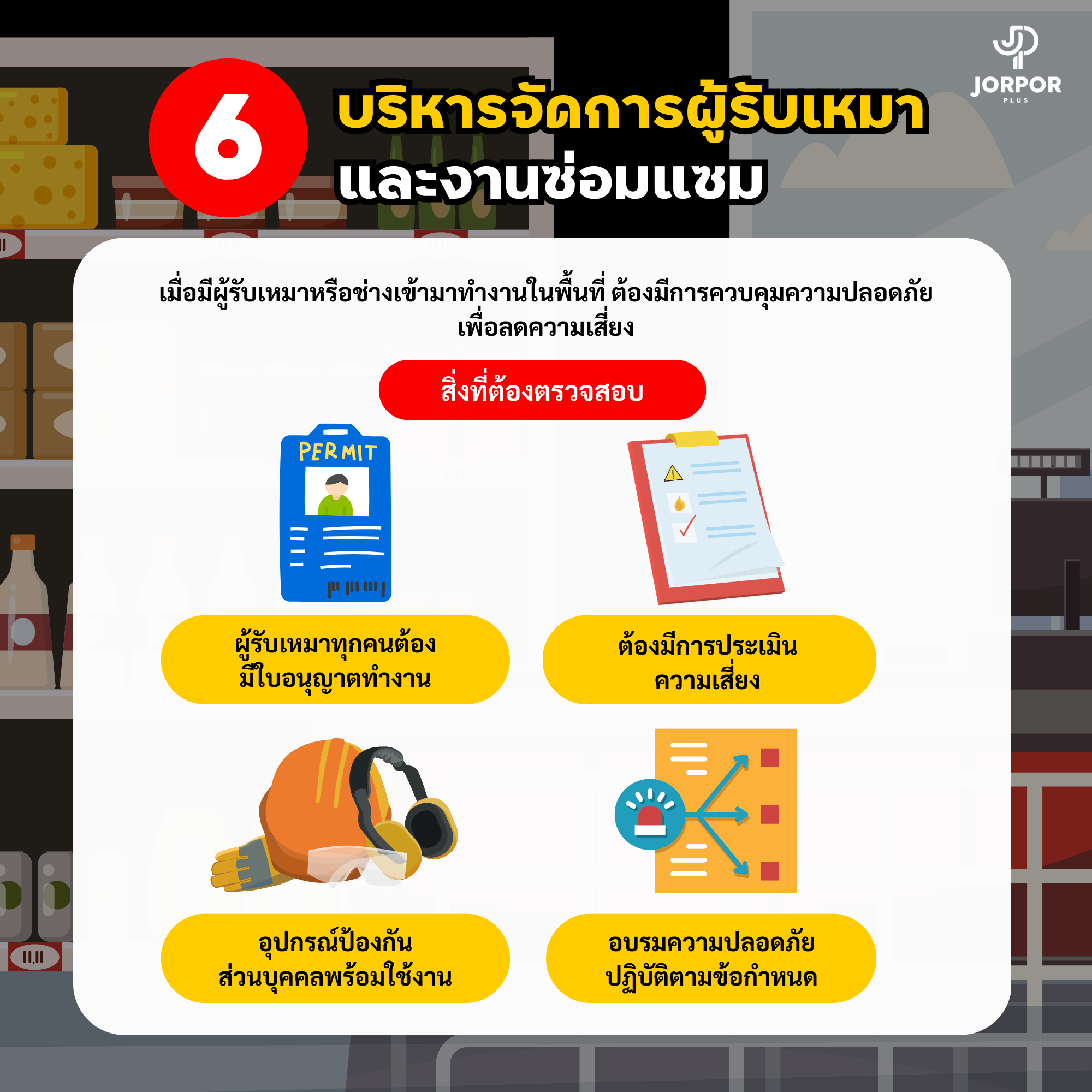 เมื่อมีผู้รับเหมาหรือช่างเข้ามาทำงานในพื้นที่ ต้องมีการควบคุมความปลอดภัยเพื่อลดความเสี่ยง
