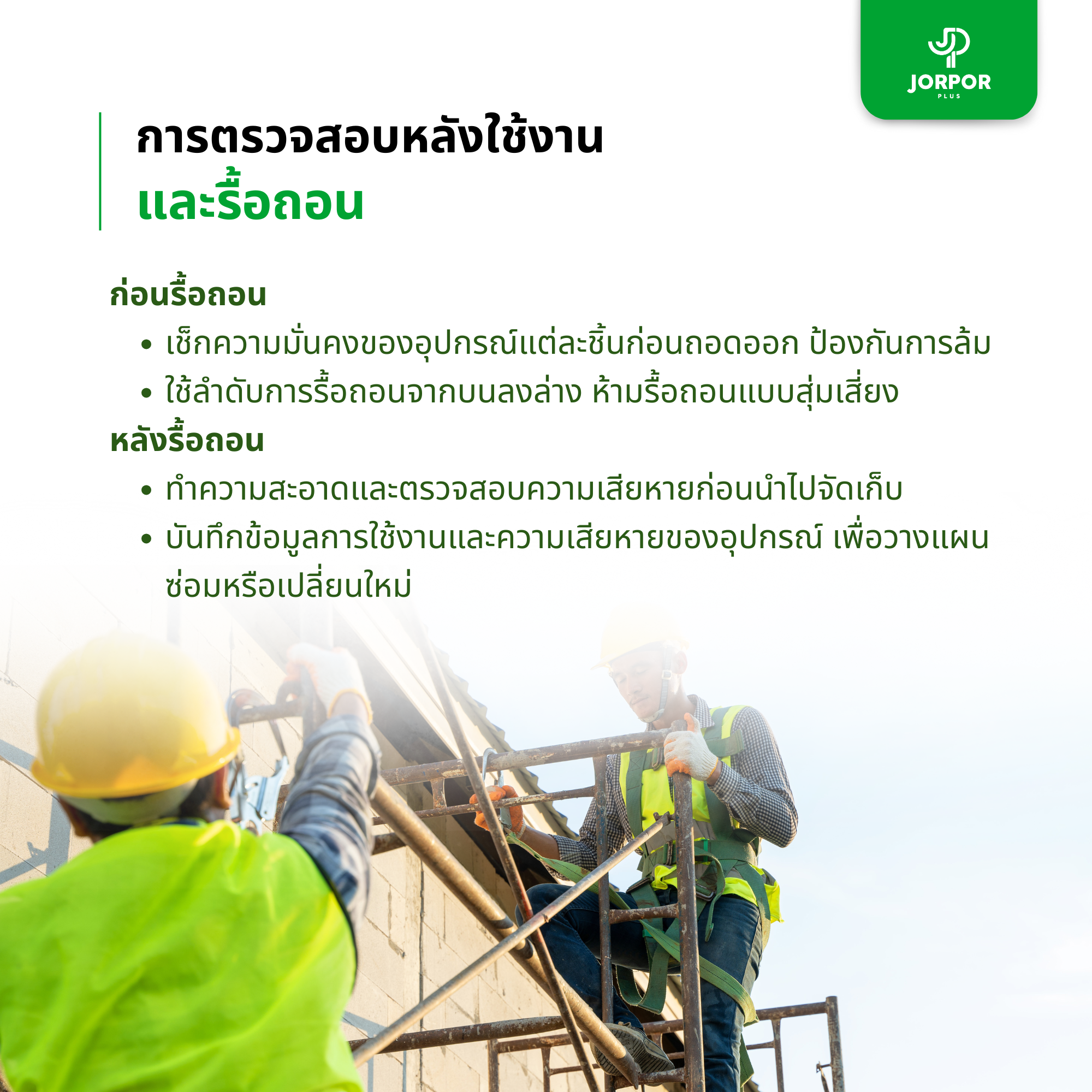 เมื่อเสร็จสิ้นการทำงาน ควรตรวจสอบและรื้อถอนอย่างถูกต้องเพื่อป้องกันอุบัติเหตุและยืดอายุการใช้งานอุปกรณ์